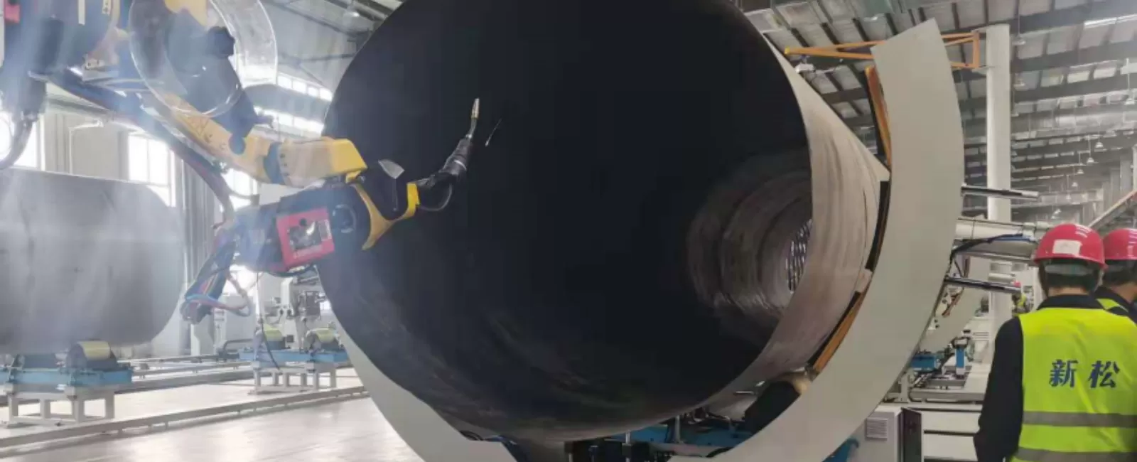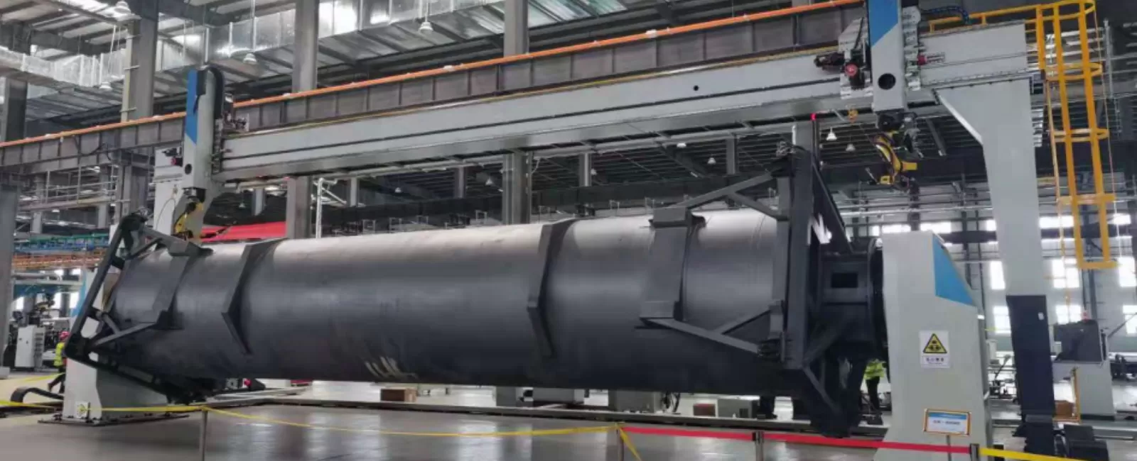 节拍提升本项目占地面积4万平米,是该行业第一条LNG罐体焊接自动化生产线,线体内包含机器人、RGV/AGV,桁架等多种自动化设备。实现从来料到成品全自动生产。