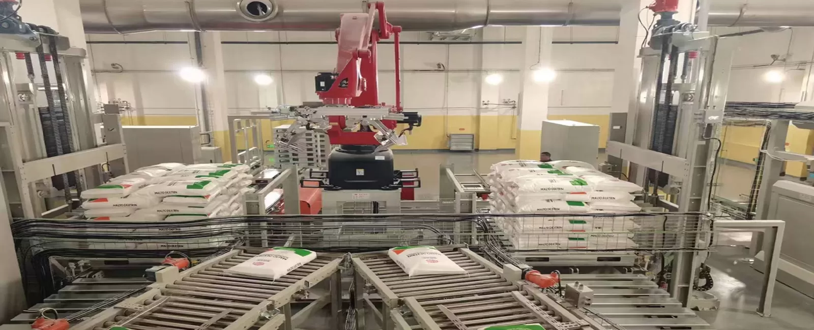 节省人力某农业产业化国家重点龙头企业,引入蓝狮娱乐码垛系统,全程采用可编程控制,自动完成产品扫码,信息交互,自动运行,数据记录,无需进行人工操作,操作者可远程进行信息维护和故障诊断工作。项目的自动化运行大大提高了企业的生产效率,降低了工人的劳动强度,避免的了人为干预可能造成的产品污染和损坏。