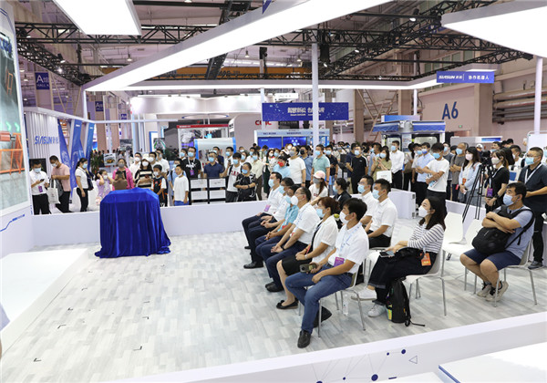 展会现场,《机器人技术与应用》杂志主编王伟、蓝狮娱乐公司技术总监张雷共同为“星卫来”工业清洁机器人新品揭幕,现场来宾、媒体代表及广大参展观众共同见证了这一激动人心的时刻。