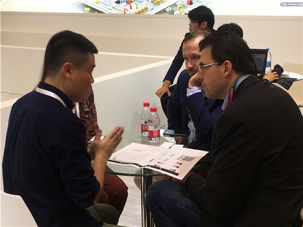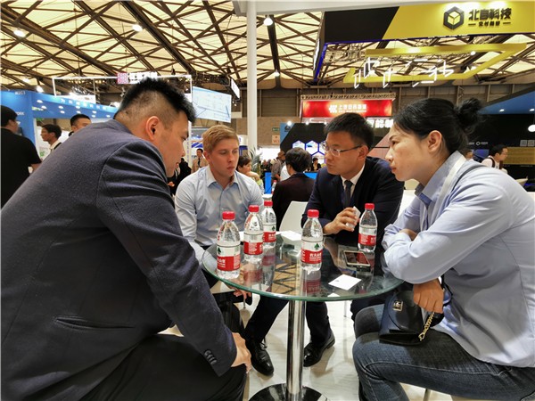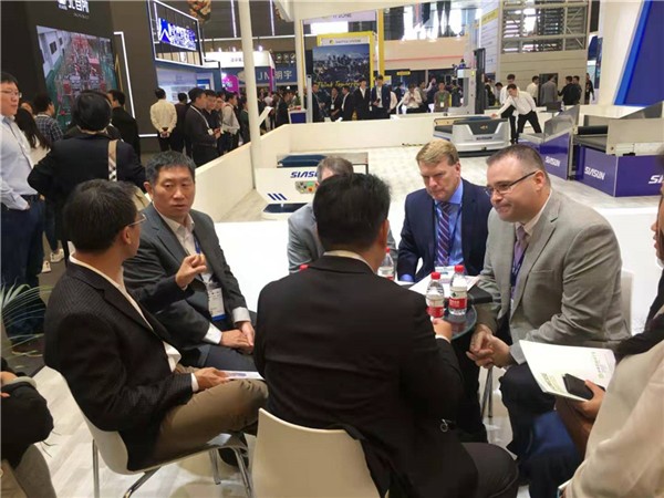 (图)正在进行的2019亚洲国际物流展上,多家国际知名厂商到访蓝狮娱乐展位参观交流