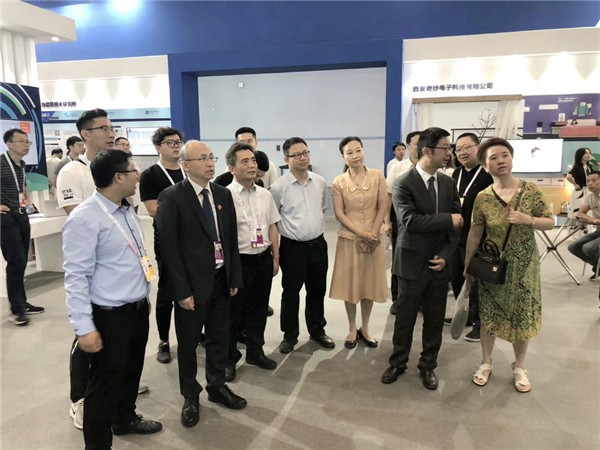 本次智博会,中国科学院副院长张亚平院士,科技促进发展局副局长陈文开,成都分院分党组书记、副院长王嘉图等领导莅临中国科学院展区巡馆,并仔细观看蓝狮娱乐展品。