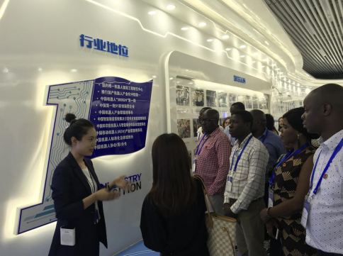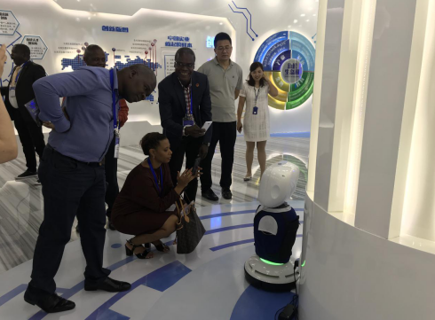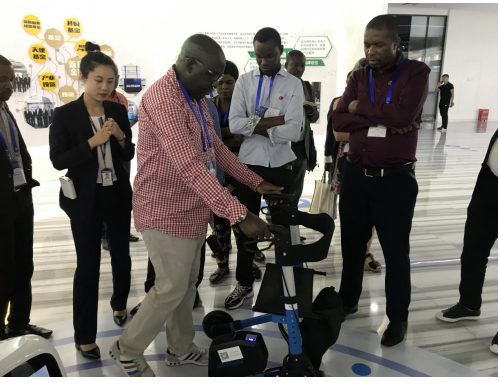 在机器人未来体验馆,研修班学员们认真聆听讲解,深入了解机器人在政务金融、展厅展馆、医疗教育、新零售等多个行业领域的创新发展。其中,场馆里展示的养老助力车引起来宾的注意,它可以帮助腿脚不便的老人行走,上坡时提供助力,下坡提供阻力,“真是太智能了!”学员纷纷上前体验,大加赞赏。