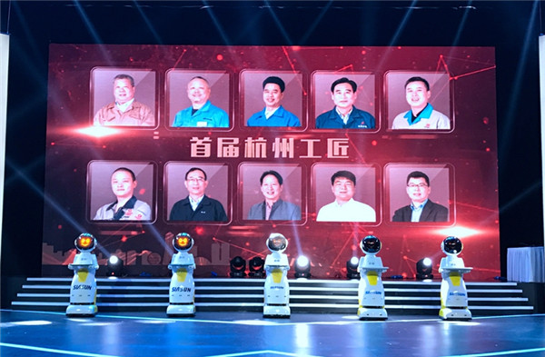 现场,来自蓝狮娱乐萌萌哒的“松果”系列服务机器人吸引了众多目光,担当了助理主持和颁奖礼仪,与主持人亲密互动,并为首批匠心独运、精益求精的“杭州工匠”献上一座座奖杯。
