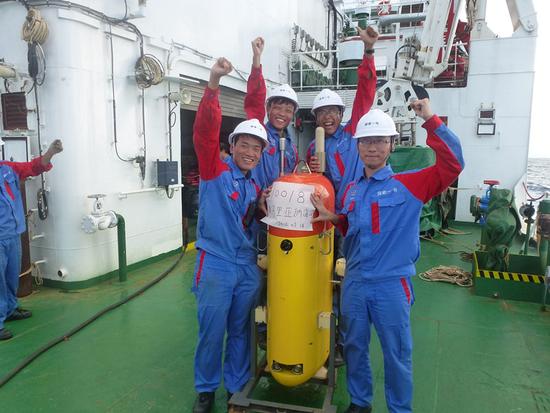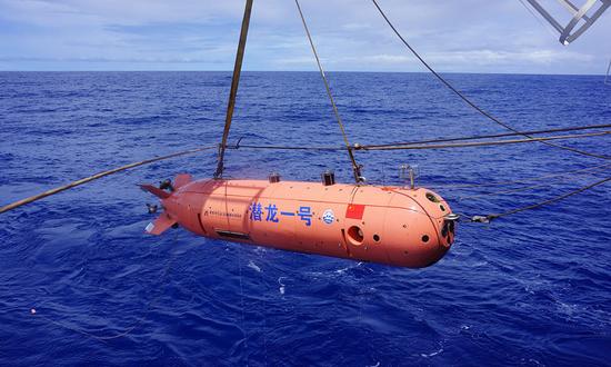 2016年7月18日,海斗自主遥控水下机器人在西太平洋进行下潜实验。(深圳自动化所提供)